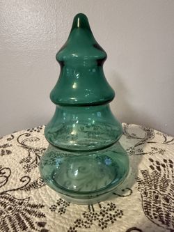 Vintage Green Glass Christmas Tree 7.5" Candy Jar Holiday Decor$15Tampa, FL
