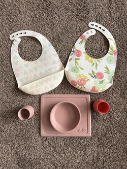 ez pz Silicone Baby Lead Weaning High Chair Bowl And Cups And Silicone Bibs$10Redlands, CA