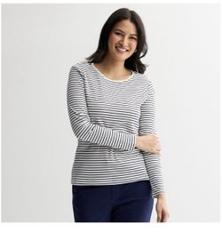 Croft & Barrow Navy Blue and White Striped Classic Long Sleeve Top$11Bolingbrook, IL