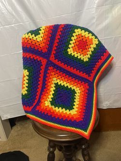 Handmade Afghan Crochet Vintage Blanket Rainbow Pride Granny Square 46in x 57in $40Imperial Beach, CA