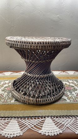 Vintage MCM Wicker Rattan Cane Swirl PLANT STAND Side Table BOHO Coastal Stool$40Imperial Beach, CA