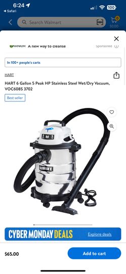 HART 6 Gallon 5 Peak HP Stainless Steel Wet/Dry Vacuum, VOC608S 3702$30Ysleta Sur, TX