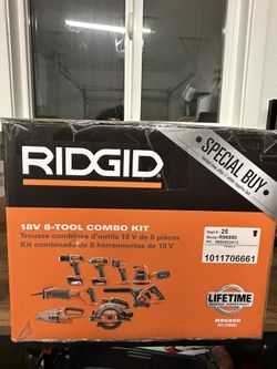 RIDGID 18V Cordless 8-Tool Combo Kit with 2.0 Ah Battery And 4.0 Ah Battery$300Oak Glen, CA