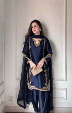 Indian Pakistani Tradition Designer Shalwar Kameez Embroidery Silk Chinnon $45Grand Terrace, CA