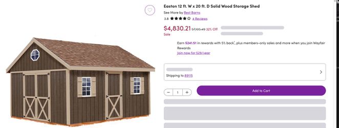Best Barns Easton 12 FT W x 20 FT D Solid Wood Storage Shed$3,000Las Vegas, NV