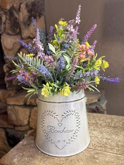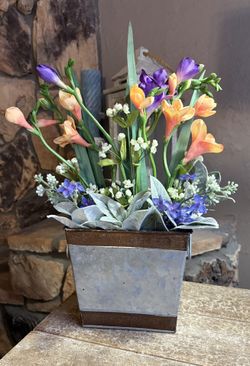 Ht-16in Width-13in HANDMADE CLEARANCE Artificial Spring Floral In A Rustic Metal Container $12Mesa, AZ