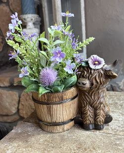 Ht-8.5in Width-9in HANDMADE artificial Purple Floral In A Cow Planter$14Mesa, AZ