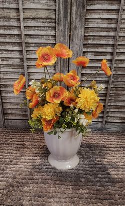 Ht-15in Width-12in HANDMADE artificial Yellow/orange Floral In A White Ceramic Vase$15Mesa, AZ