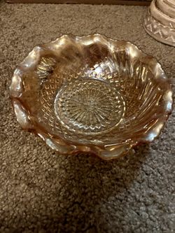 6” vintage marigold carnival glass bowl with a scalloped edge and a diamond or swirl pattern. $10Benson, NC