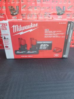MILWAUKEE M12 12V LITHIUM-ION XC HIGH OUTPUT 5.0 AH BATTERY (2-PACK ) STARTER KIT WITH CHARGER$165Visalia, CA