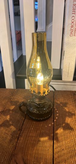 Vintage farmhouse electrified amber glass miniature finger oil lamp$45Youngsville, NC