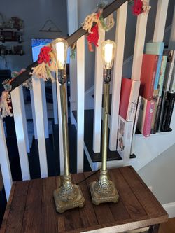 Reconditioned pair of brass-tone Corinthian column table lamps$70Youngsville, NC