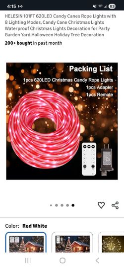 New HELESIN 101FT 620LED Candy Canes Rope Lights with 8 Lighting Modes, Candy Cane Christmas Lights Waterproof Christmas Lights Decoration for Party G$10Anaheim, CA