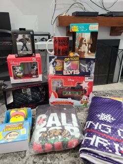 Comes with" the office" tree skirt, Ornaments, cups, and a coal car.
