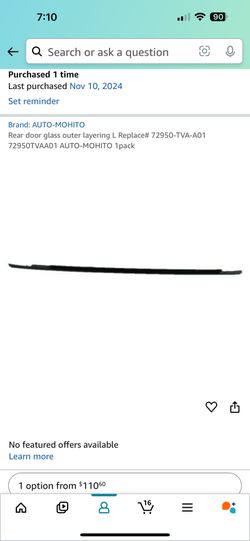 72950 TVA A01 Rear Glass Outer Layering L 1 Pack$100Hayward, CA