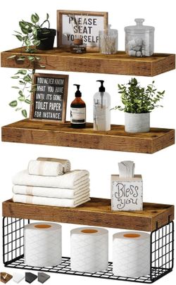 Bathroom Shelves Over Toilet - Wall Mounted Floating Shelves Toilet Paper Storage Small Farmhouse Decor Shelf 16 inch Set of 3, Rustic Brown $20Chicago, IL
