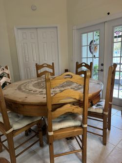 Solid Wood Dining Room Table Mosaic Marble Center With 6 Chairs$499Lake Worth, FL