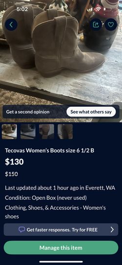 Tecovas Women’s Boots size 6 1/2 B$130Everett, WA
