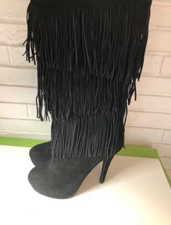 Black Fringe black Suede High Heel Boots size 10$29Lake Clarke, FL