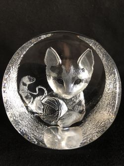 MATS JONASSON KITTY CAT WITH BALL OF YARN SCULPTURED CRYSTAL PAPERWEIGHT$20San Diego, CA