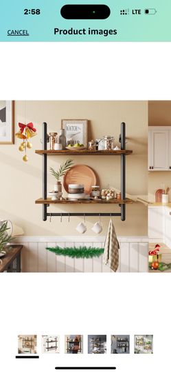 Bestier Floating Shelves Kitchen Shelves Wall Mounted 24" 2 Tier Ladder Shelves with Tower Bar, Wall Decor for Bathroom, Bedroom, Living Room, Coffee $35North Las Vegas, NV
