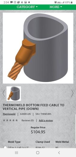 Thermoweld bottom feed cable to vertical pipe down$35Sacramento, CA