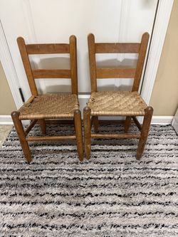 Set of 2 small wooden chairs with woven seats$15Farragut, TN