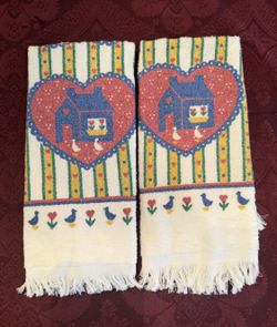 Vintage 90s Country Cottagecore Kitchen Towel Set - Blue Saltbox House & Geese Set of 2$30Knoxville, TN
