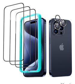 ESR 3+1 Pack for iPhone 15 Screen Protector, 3 Tempered-Glass Screen Protector and 1 Set Camera Lens Protector, 2.5D Curved Edges, Full-Coverage Milit$3Corona, CA