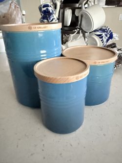 Le Creuset Marseille Blue Canister Set Wood Lid Stoneware Kitchen Set 3$129Gilbert, AZ