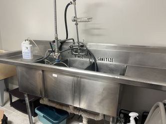 7’ 3 compartment sink with power suds machine, professional spring pull down faucet 2 drain boards$800Palm Beach Gardens, FL
