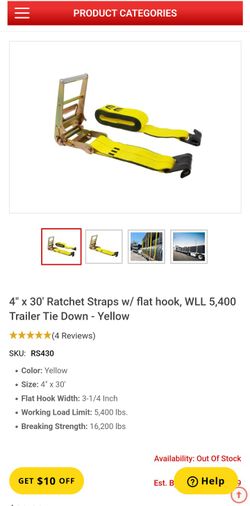 $120 For 13 Rachet Straps. 4" x 30' Ratchet Straps w/ flat hook, WLL 5,400 Trailer Tie Down - Yellow$120Anna, TX