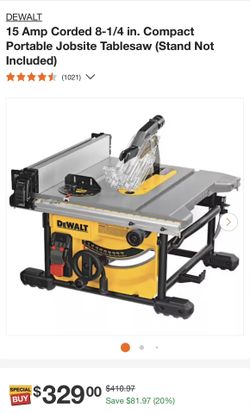15 Amp Corded 8-1/4 in. Compact Portable Jobsite Tablesaw (Stand Not Included)$320South Gate, CA