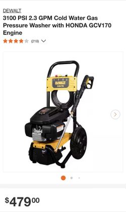 3100 PSI 2.3 GPM Cold Water Gas Pressure Washer with HONDA GCV170 Engine$290South Gate, CA