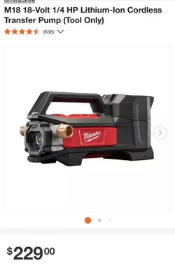 M18 18-Volt 1/4 HP Lithium-Ion Cordless Transfer Pump (Tool Only)$180South Gate, CA