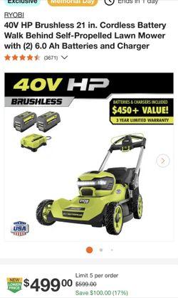 40V HP Brushless 20 in. Cordless Electric Battery Walk Behind Self-Propelled Mower (Tool Only)$250South Gate, CA