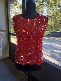 Red Silk Fine Guage Knit Top With Sequins $20Oviedo, FL