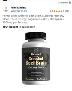 Primal Being Grassfed Beef Brain, Supports Memory, Mood, Focus, Energy, Cognitive Health - 90 Capsules, 1500mg per Serving$20Fontana, CA