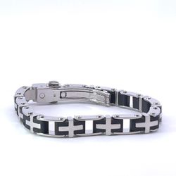 SHR & Simmons Stainless Black Rubber 9.5mm Cross Link Diamond .01ct Bracelet$30Whittier, CA