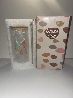 New*Cute Glass Iced Coffee Cup w/ Bamboo Lid & Straw – Swiffera Design$12Birmingham, AL
