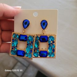 Blue Bejeweled Party Earrings $20Modesto, CA