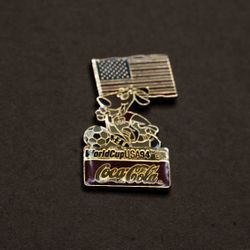 Coca-Cola World Cup USA 94 Soccer with Mascot Holding USA Flag Lapel Pin$12River Grove, IL