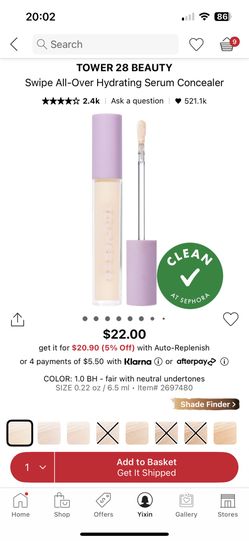 Tower 28 Beauty Swipe All-Over Hydrating Serum Concealer $20Marlborough, MA