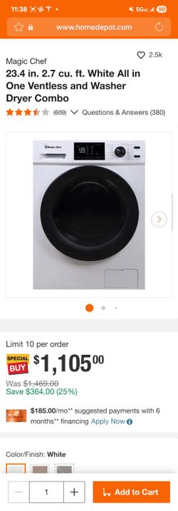 23.4 in. 2.7 cu. ft. White All in One Ventless and Washer Dryer Combo$350San Antonio, TX