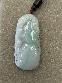 Lucky Feng Shui Jade Pendant With Three Pixie Figure Play On Eggplant n531$388Trenton, NJ