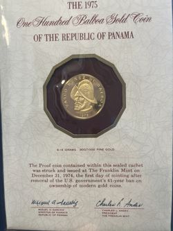 1975 One Hundred Balboa Gold Proof Coin ~ Panama ~ Franklin Mint COA$1,988Trenton, NJ