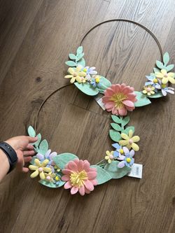 12” Hard Wire Wreath With Floral Felt Pastel Colors For Girl Baby Shower Decor Or Spring Mothers Day Etc Wall Decor Birthday Party Spring$15Redondo Beach, CA