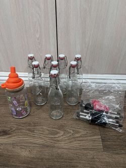 Healthy 8oz glass air tight juicing ginger, celery juices 8 Glass Bottles For Sauces Or Syrups. With Funel And Pooring Beeks. Good For Oils, Flavored $20Torrance, CA