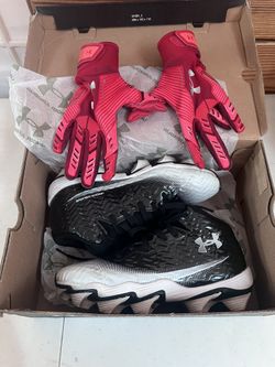 With Gloves For 🏈Size Is Small. And Under Armour American 🏈 Football Cleats UA Spotlight Hammer For Kids Size Is 3.5Y For Ages 8-10 Years Old. $35Torrance, CA