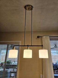 THREE LIGHT ISLAND PENDANT BRUSH FINISH DINING TABLE LIGHTS ^^^GOOD CONDITION^^^$20Beaumont, CA
